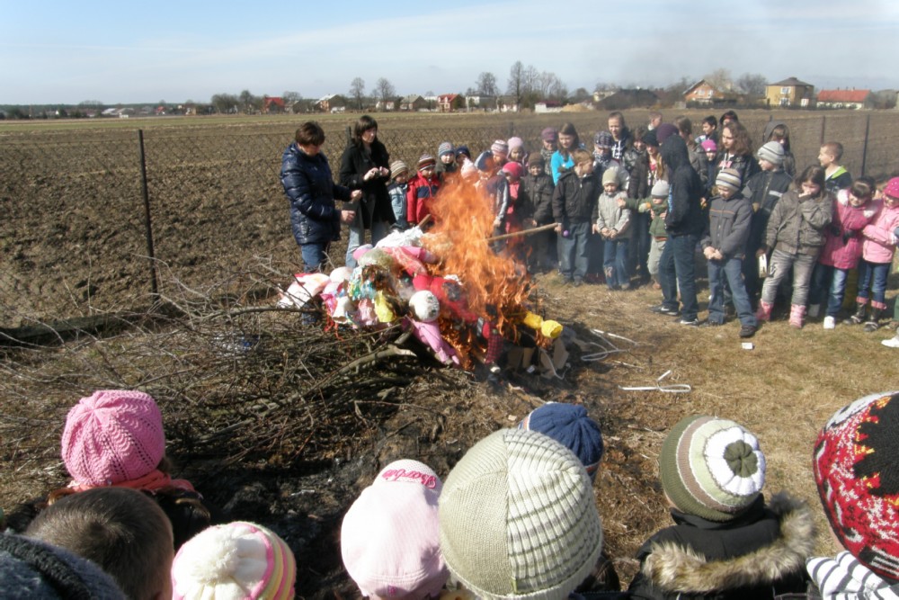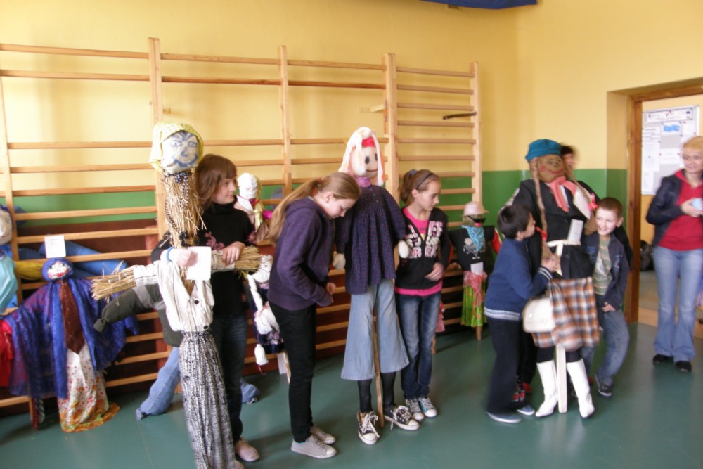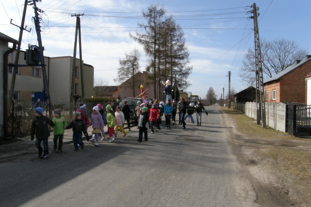 W naszej szkole przyjął się zwyczaj żegnania zimy i witania nadchodzącej wiosny. W tym roku, wszyscy spragnieni nadejścia wiosny przygotowywali się do jej powitania. Dzieci w poszczególnych klasach przyniosły do szkoły wykonane przez siebie kukły - Marzanny, po czym w konkursie zorganizowanym przez panią Annę Górną wybrano najpiękniejsze i największe. W kategorii największa kukła zwyciężyli: Krzysztof Doromoniec i Jakub Kwiatkowski, Zuzanna Nowicz i Agata Ciotucha oraz Julia Kołek, zaś w kategorii najpiękniejsza Marzanna nagrodzono: Dorotę Nowicz, Julię Ryszkę i M. Gawina. Następnie wszyscy uczniowie wraz z wychowawcami ruszyli na spacer okolicami szkoły, którego uwieńczeniem było spalenie kukieł symbolizujących zimę.