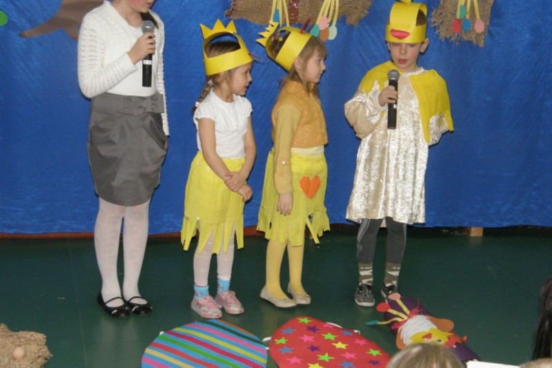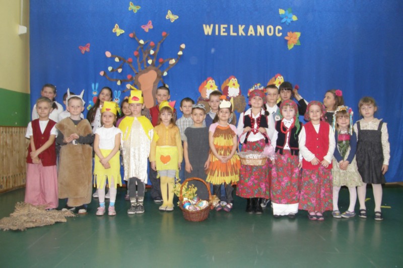 W dniu 4 kwietnia 2012r. w Szkole Podstawowej w Łęcznie dzieci przygotowały z okazji zbliżających się Świąt Wielkanocnych bardzo ciekawe i pełne wiosennych kolorów przedstawienie pt. „Bajeczka wielkanocna”. Mali aktorzy przebrani w piękne kolorowe stroje przypomnieli zgromadzonym gościom tradycje związane z tymi świętami i złożyli życzenia wszystkim przybyłym na uroczystość. Uczniowie dowiedzieli się skąd wzięła się tradycja malowania jajek na Wielkanoc, co miało związek z ogłoszonym wcześniej konkursem na najładniejszą pisankę, który został tego dnia rozstrzygnięty. Konkurs cieszył się dużym zainteresowaniem, uczniowie przynieśli jajka niezwykle piękne i oryginalne a poziom był wysoki i wyrównany. Przedstawienie i konkurs przygotowały panie: E. Famulska i D. Hamczyk.