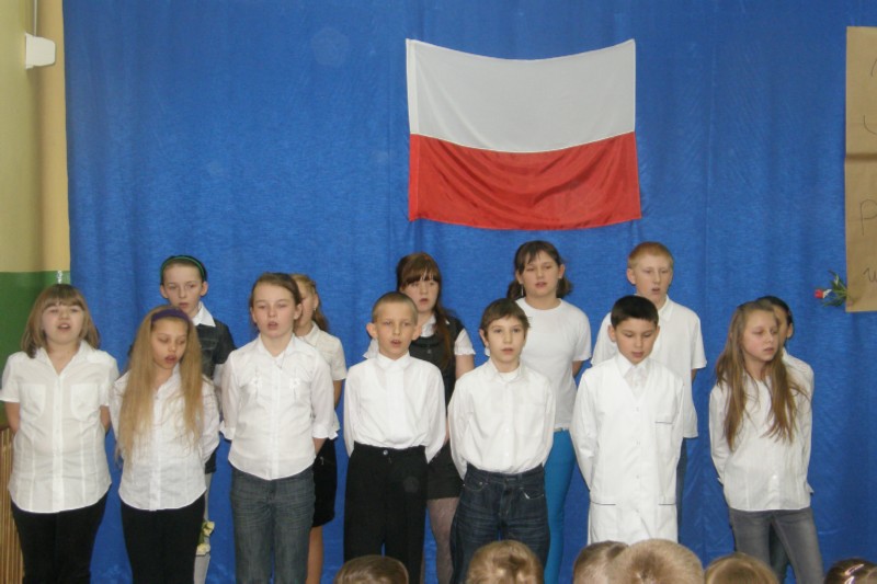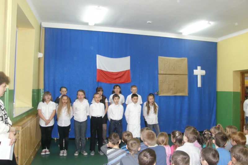 Uczniowie klas IV - VI przygotowali program słowno – muzyczny. Nad całością czuwały panie: Iwona Krajewska i Magorzata Janu.