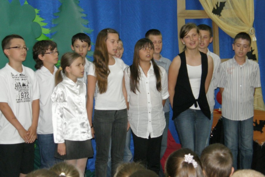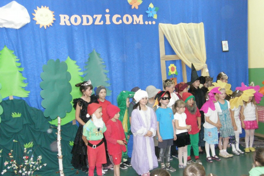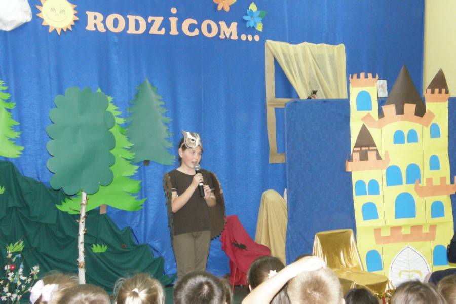 Jest taki jeden, szczególny dzień w roku, w którym nasze Kochane Mamy mają swoje święto. Uczniowie naszej szkoły uczcili ten dzień w sposób bardzo uroczysty. Dzieci z klasy „0” i klasy „II” pod opieką pań: D. Hamczyk i E. Famulskiej szybko nauczyły się swoich wierszyków oraz tekstów piosenek. Chętnie uczestniczyły w próbach wykazując dużo zapału, zaangażowania, wzajemnie siebie motywując do pracy. 26 maja 2012 roku o godzinie 12.00 uroczystego powitania dokonała dyrektor szkoły Pani Beata Purgał. A potem rozpoczął się występ. Dzieci w pięknych strojach, w odświętnie udekorowanej sali zrobiły na rodzicach wielkie wrażenie. Przestawiły spektakl pt. „Nie ma tego złego co by na dobre nie wyszło,”jest to nieco przewrotna opowieść o bohaterach popularnych baśni, nie o dobrych jednak, a właśnie o złych. Pojawiają się więc i Zła Królowa z „Królewny Śnieżki”, i Smok z „Szewczyka Dratewki”, a także Wilk z „Czerwonego Kapturka” oraz Czarownica z „Jasia i Małgosi”. Okazuje się, że są oni zmęczeni niewdzięczną rolą czarnych charakterów, wobec czego postanawiają zniknąć. Ich nieobecność, mimo że stała się początkowo przyczyną radości pozostałych mieszkańców baśni, wkrótce staje się nie do zniesienia – świat bez nich jest po prostu nudny i pozbawiony wyrazu, dlatego trzeba koniecznie sprawić, aby powrócili. Naszym rodzicom ich dzieci w roli bohaterów najbardziej znanych bajek bardzo się podobały. Przedstawienie urozmaicili nam wspaniałe tancerki i doskonali raperzy z "zerówki." Publiczność była zachwycona i biła gromkie brawa. Dla mam, oprócz występu dzieci przygotowały w klasach piękne laurki.