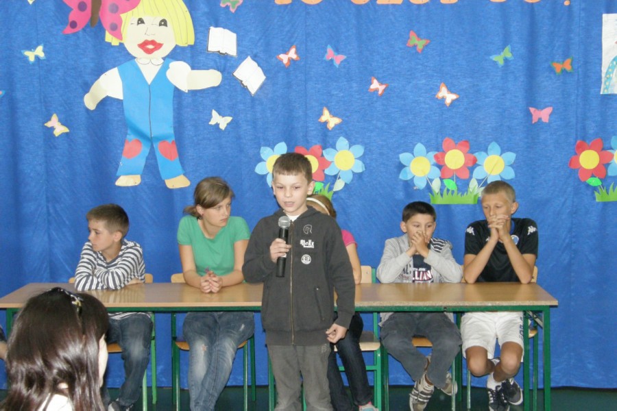 Konkurs czytelniczy: I miejsce Julia Kołek - kl. V; II miejsce Szymon Szczęsny - kl. IV; III miejsce Dominik Kołek - kl.VI. Tutaj poziom wiedzy był wyrównany i potrzebna była dogrywka. Uczestnicy zaskoczyli wszystkich swoją szczegółową wiedzą na temat życia i książek Korczaka.