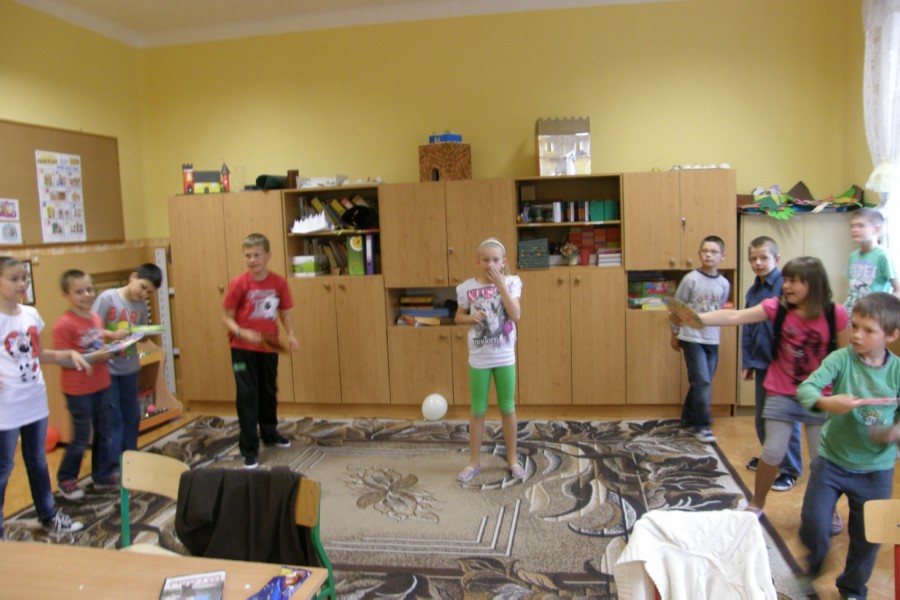 W klasie II i III odbyły się liczne zabawy i konkursy przygotowane przez wychowawczynie np. konkurs plastyczno- sprawnościowy „Latające talerze” czy zabawy plastyczne „Origami z kółek.”
