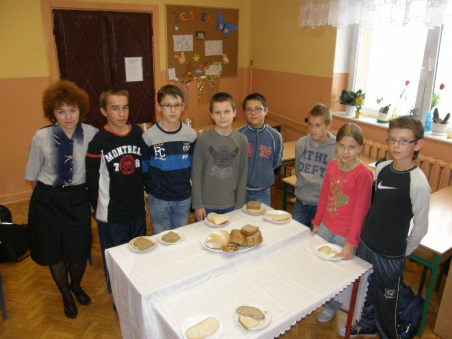 W dniach 16 - 23 października 2012 odbyła się czwarta edycja kampanii „Tydzień chleba w szkole”. Pomysłodawcą akcji jest Fundacja Dobre Życie. Zwróciła się ona do szkół i przedszkoli o to aby w placówkach przeprowadzić zajęcia o takiej tematyce. Nasza szkoła aktywnie uczestniczyła w tej kampanii. Była to okazja do zwrócenia uwagi uczniów na to co jedzą i zadbania o własne zdrowie. Jednak głównym bohaterem przeprowadzonych zajęć był chleb. Dzieci wypowiadały się na jego temat. Mówiły o tym jak powstaje (wykorzystywały zgromadzone przepisy kulinarne), rozpoznawały gatunki. Uczniowie zapoznali się z legendami dotyczącymi chleba, opowiadali o jego znaczeniu w życiu człowieka, opisywali wygląd, układali pouczenia dotyczące postępowania z żywnością itd. Na zakończenie odbyła się degustacja różnych rodzajów chleba.