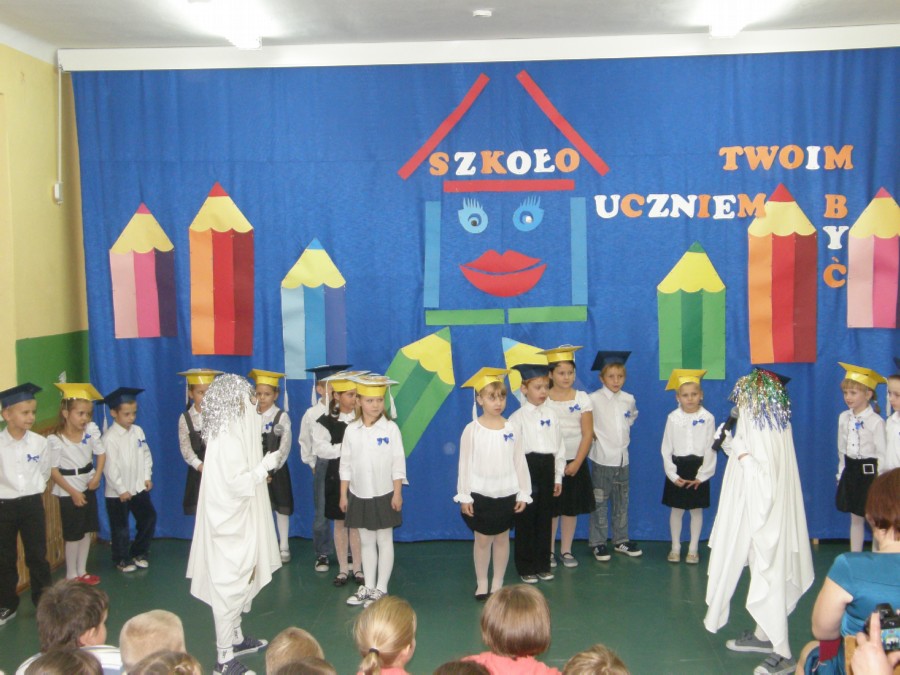 Uroczystość ślubowania klas pierwszych odbyła się w naszej szkole 30.10.2012 r. . Składała się z dwóch części: oficjalnej i artystycznej. Spotkanie rozpoczęło się powitaniem zebranych uczniów, rodziców i zaproszonych gości. Uczniowie klas pierwszych złożyli uroczyste przyrzeczenie. Ślubowali być sumiennymi uczniami, dbać o dobre imię szkoły i przynosić radość swym rodzicom i nauczycielom. Następnie Pani Dyrektor dokonała uroczystego pasowania dzieci na uczniów Szkoły Podstawowej w Łęcznie. W części artystycznej uczennice i uczniowie klas pierwszych zaprezentowali przygotowany przez siebie program: wiersze i piosenki, w których żegnali lata przedszkolne i opowiadali o początkach nowego etapu życia – bycia uczniem. Nad całością uroczystości czuwała Pani wychowawczyni Małgorzata Janu. Po wielkich emocjach związanych z pierwszymi występami i pozowaniu do wspólnego zdjęcia, uczniowie udali się do klas, gdzie czekał na nich przygotowany przez rodziców poczęstunek.