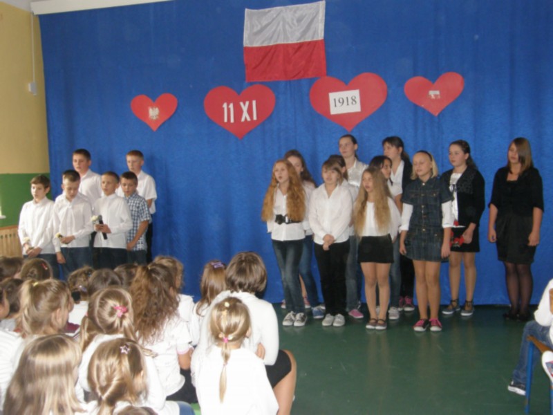 Z okazji Narodowego Święta Niepodległości w dniu 9 listopada zorganizowaliśmy w naszej szkole tradycyjny apel.Przygotowany przez uczniów program artystyczny pozwolił nam przypomnieć sobie smutne dzieje Polaków pod zaborami, zakończone triumfalnie odzyskaniem niepodległości w dniu 11 listopada 1918 roku. Śpiewane przez młodszych uczniów pieśni, recytowana przez starszych poezja oraz komentarz historyczny kierowały naszą refleksję ku wartości, jaką jest wolność i własne państwo.