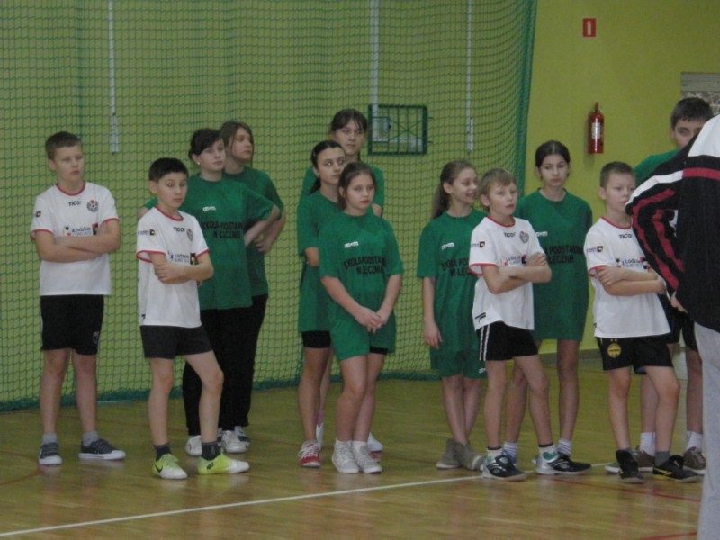 Tydzień później bo 28 stycznia 2014r. odbyły się w naszej szkole zawody w mini piłce nożnej halowej. Organizatorem zawodów byli Urząd Miejski w Sulejowie, M-G Z LZS w Sulejowie i Szkoła Podstawowa w Łęcznie. W zawodach brały udział dwie szkoły tj. SP1 Sulejów i gospodarz SP Łęczno. Drużyny rozgrywały swoje mecze systemem „każdy z każdym – mecz i rewanż”. Naszą szkołę reprezentowały dwie drużyny chłopców z klasy piątej i czwartej. Zawody wygrali piłkarze z Sulejowa, drugie miejsce przypadło w udziale zawodnikom z klasy czwartej z Łęczna. Trzecie miejsce zajęli uczniowie klasy piątej.