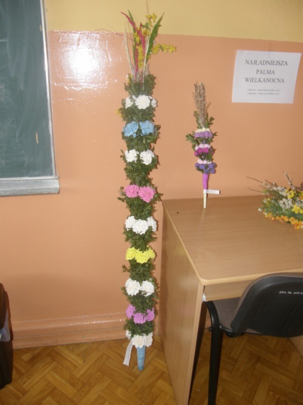 8 kwietnia rozstrzygnięto w naszej szkole konkurs „Palm i pisanek wielkanocnych”, który co roku cieszy się dużym zainteresowaniem wśród uczniów. Jak zwykle uczniowie wykonali wiele pięknych, pracochłonnych i bardzo różnorodnych pisanek oraz palm, z których trudno było wybrać te najpiękniejsze.