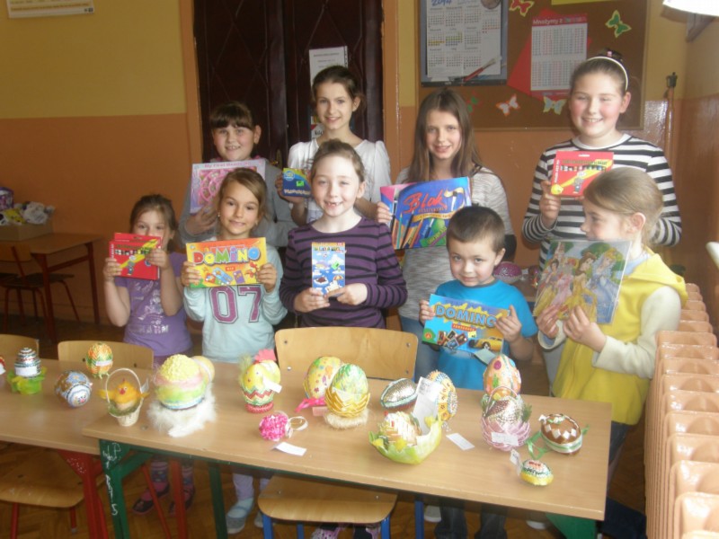 Wszystkie prace wzięły udział w Gminnym Konkursie Palm i Pisanek organizowanym w MOK – u w Sulejowie skąd przywieźliśmy atrakcyjne nagrody. Na koniec wszystkie prace wystawiono na szkolnym korytarzu gdzie wszyscy mogą je podziwiać.