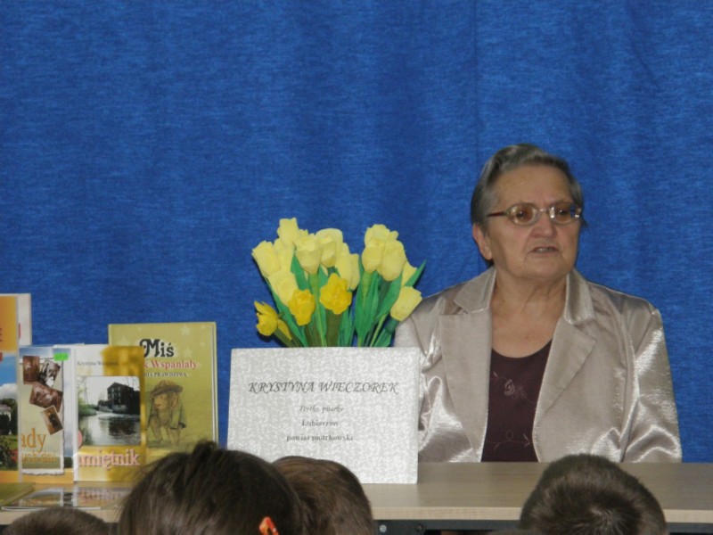 4.06.2014r. Szkołę Podstawową w Łęcznie odwiedziła pani Krystyna Wieczorek . Pani Wieczorek jest autorką tomików poetyckich „Rozmyślanie” i „Wspomnienia”. Jednak największą sławę przyniosła jej saga „Młyn na Stawkach” oraz „Młyn na Stawkach nad Czarną” Spotkanie było bardzo interesujące. Młodsi uczniowie poznali barwne losy misia Wojtka. Starsi pogłębili swoją wiedzę na temat zwyczajów ludowych i życia na wsi w minionych latach. Pani Wieczorek recytowała również swoje wiersze i śpiewała. Odpowiadała na wiele pytań dzieci związanych z powstawaniem jej książek. Dla uczniów naszej szkoły spotkanie z pisarką będzie cennym wspomnieniem.