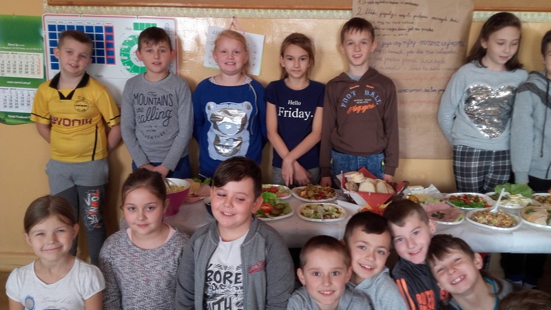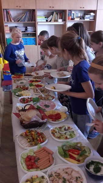 Nasza szkoła przyłączyła się do akcji edukacyjnej „Śniadanie daje moc”. 8 listopada klasy 0-III zorganizowały w klasach wspólne śniadanie. Przy wsparciu rodziców i wychowawców przygotowaliśmy zdrowe śniadanie. Dzieci z oddziału przedszkolnego przygotowały kolorowe kanapki , owocowe szaszłyki, winogronowe jeże, myszko z jajek oraz jogurty, w klasie I przy udziale rodziców dzieci mogły częstować się zdrowymi kanapkami, owocami i jogurtami, klasa II przygotowała (w samodzielnie wykonanych czapkach kucharskich) "tęczowe śniadanie " z przyniesionych produktów oraz plakaty nawiązujące do tej tematyki zaś klasa III korzystała z przygotowanego przez siebie „szwedzkiego stołu”. Wszystkie stoły w tym dniu były barwne a przede wszystkim zdrowe. Celem tej akcji było zwiększenie świadomości na temat zdrowego odżywiania i roli śniadania w diecie dziecka. Podczas śniadania omówiliśmy zatem piramidę żywieniową i zasady prawidłowego odżywiania. Wspólne przygotowywanie i spożycie śniadania sprawiło dzieciom wiele przyjemności i na pewno dobrze smakowało. Wierzymy, że udział w akcji przyczyni się do zmiany nawyków żywieniowych i większej dbałości o spożywanie śniadania – w domu i szkole.