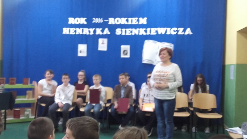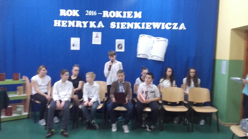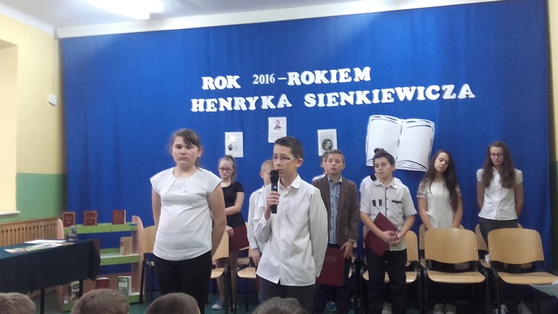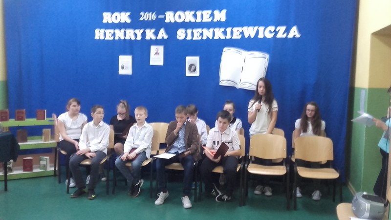 Starali się w nim przybliżyć postać znanego na świecie autora. Zaprezentowana biografię pisarza i fragmenty jego najbardziej znanych dzieł. Upamiętnieniu Sienkiewicza służyły także znajdujące się w bibliotece szkolnej i na korytarzu „gazetki tematyczne.”